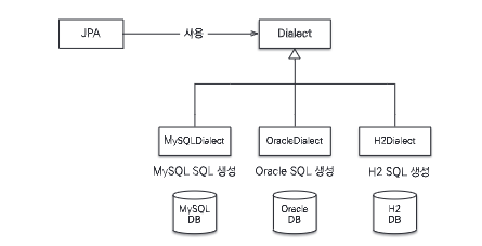 JPA는 특정 데이터베이스에 종속적이지 않은 기술이다. 따라서 다른 데이터베이스로 손쉽게 교체할 수 있다. 그런데 각 데이터베이스가 제공하는 SQL 문법과 함수가 조금씩 다르다는 문제가 있다.
