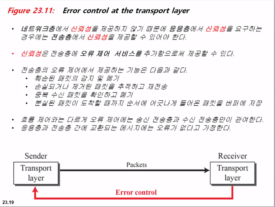 흐름 제어와는 다르게 오류 제어에는 송신 전송층과 수신 전송층만이 관여한다.
