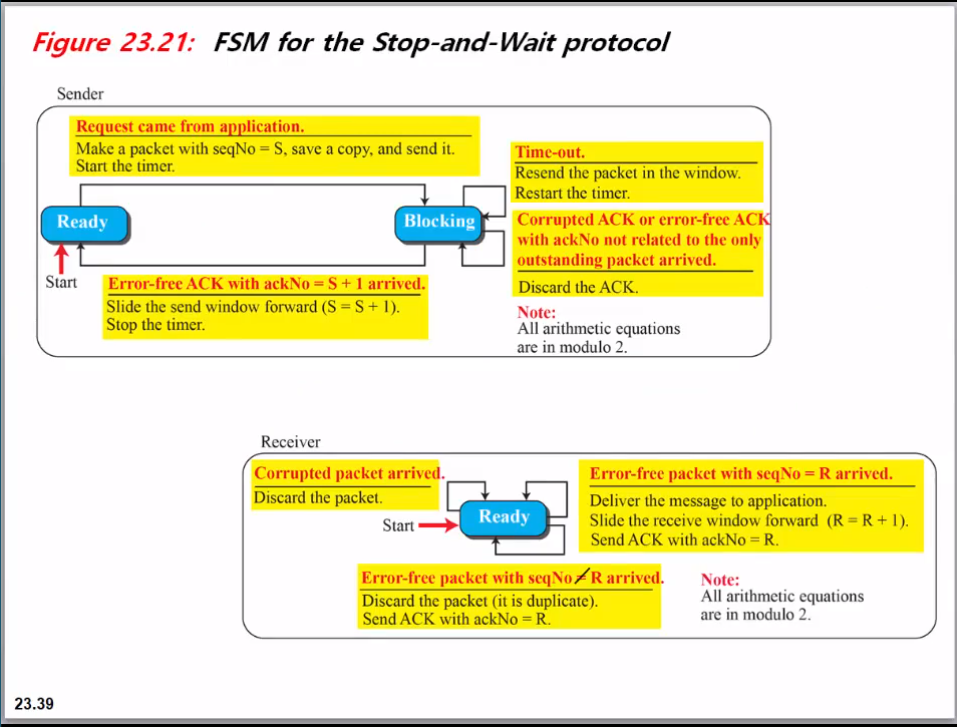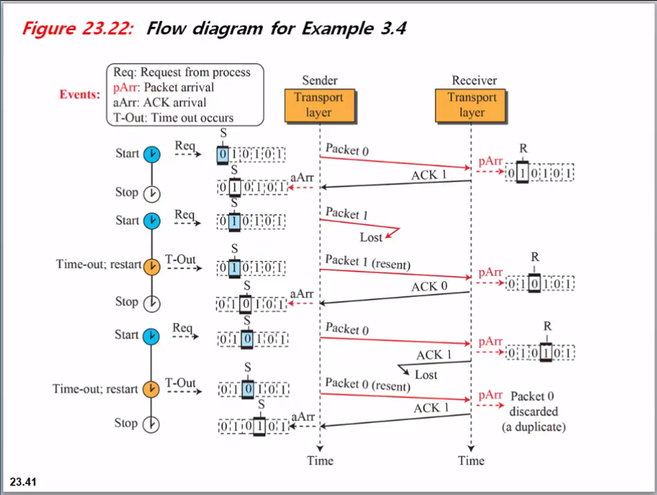 그러나 나중에 보 겠지만, 송신자와 수신자에서 단일 슬롯 버퍼를 사용하는 이러한 유형의 흐름 제어는 비효율적입니다.