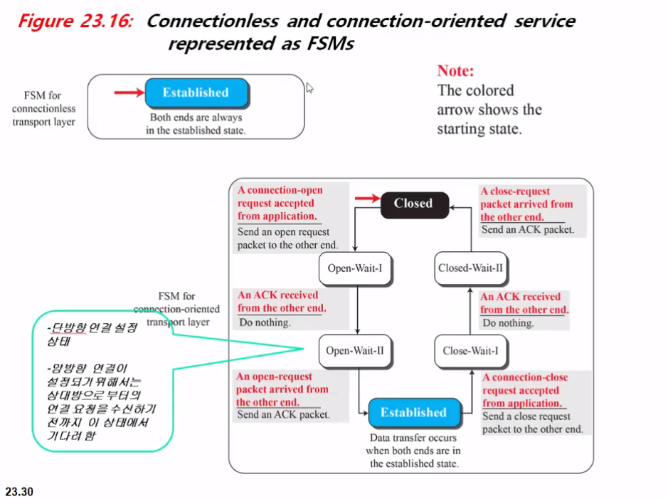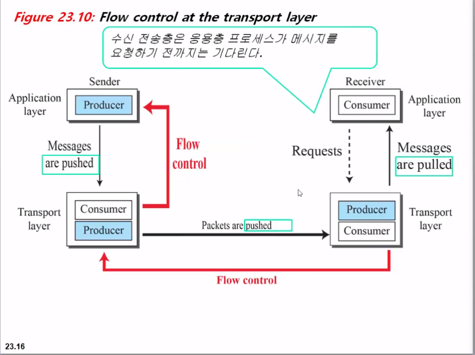 전송층이 수신자 역할을 못하게 될 수도 있으므로 흐름제어를 해준다.