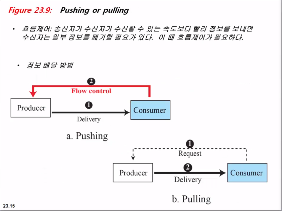 따라서 수신자가 필요하지 않을 때도 계속 메시지를 보낼 수 있으므로 흐름제어가 필요하다.