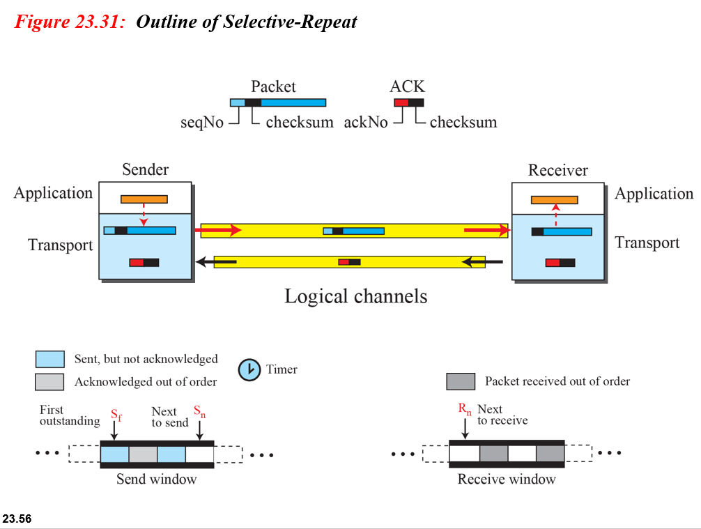 선택적 반복을 구현하는 대부분의 전송층 프로토콜은 단지 하나의 단일 타이머 사용함