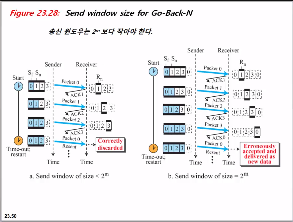 송신 윈도우는 2^m보다 작아야 한다.