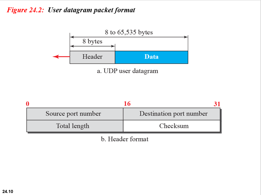 그림 24.2는 사용자 데이터 그램의 형식을 보여줍니다.