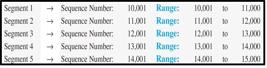 데이터가 5 개의 세그먼트 (각각 1,000 바이트를 전송)로 전송되는 경우 각 세그먼트의 시퀀스 번호는 무엇입니까?
