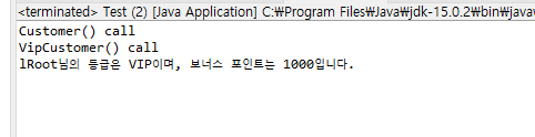 - new VipCustomer()를 호출하면 Customer()가 먼저 호출 됨