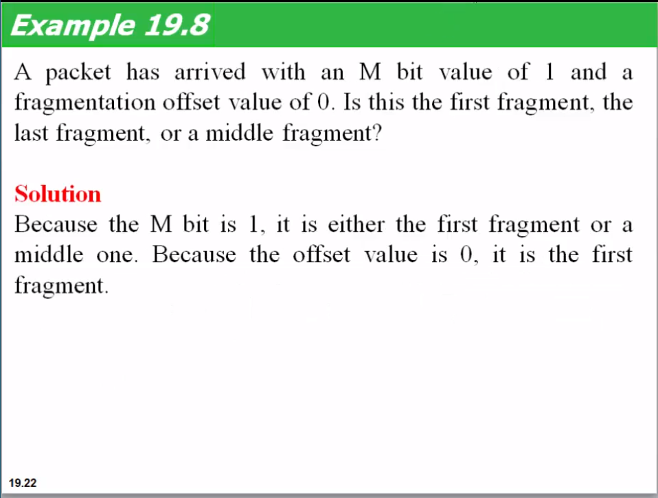 M 비트 값 1과 단편화 오프셋 값이 0 인 패킷이 도착했습니다. 이것이 첫 번째 단편, 중간 단편 또는 마지막 단편입니까?